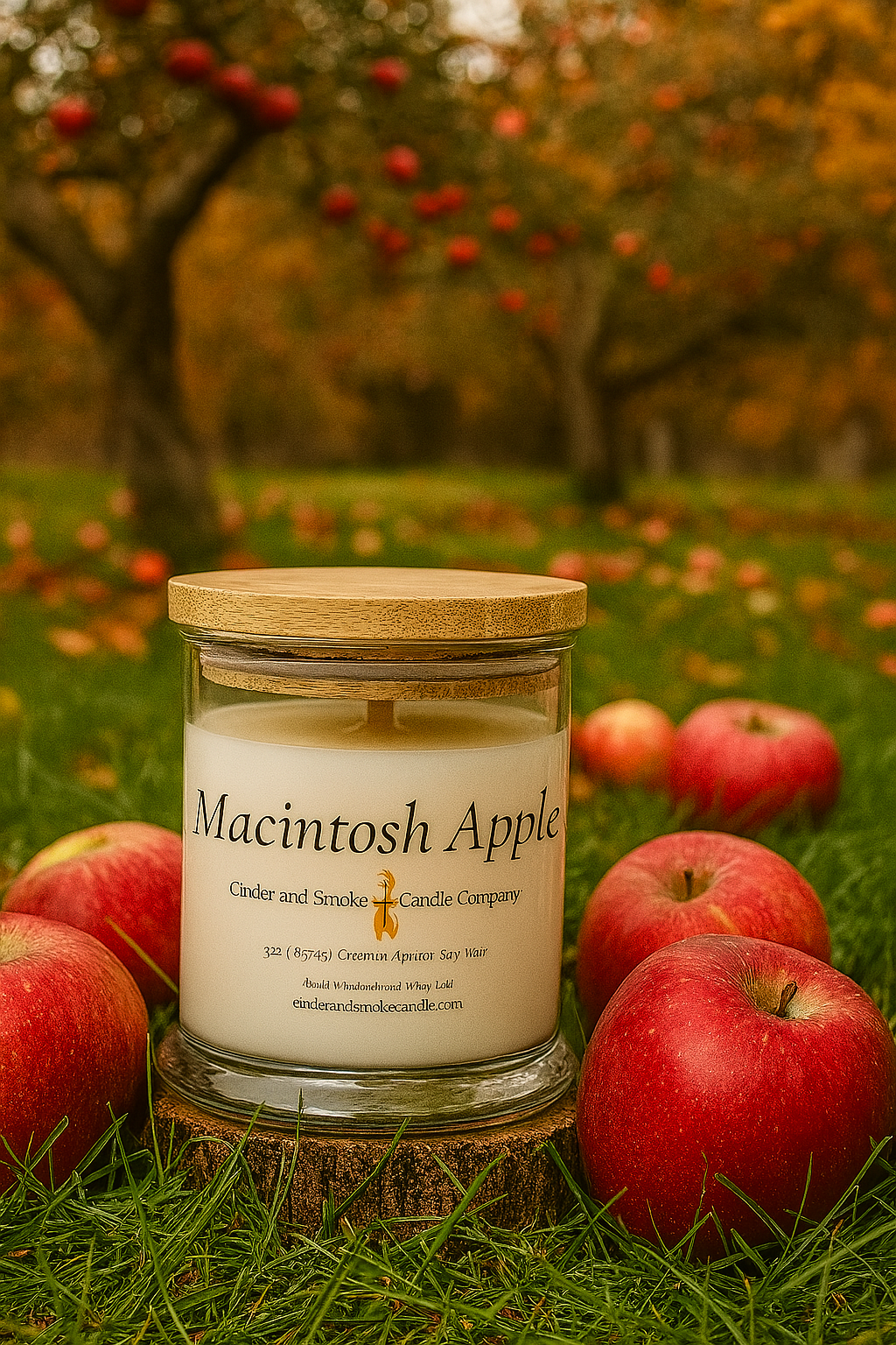 Macintosh Apple candle captures the crisp, juicy scent of freshly picked apples straight from the orchard. It typically opens with bright, tart top notes of ripe Macintosh apples, sometimes complemented by hints of green leaves or pear to add freshness. The heart of the fragrance often features a slightly sweet, mellow apple flesh, evoking the sensation of biting into a just-picked fruit. A soft base of light musk or vanilla may be added for warmth and balance, but the apple remains the star.